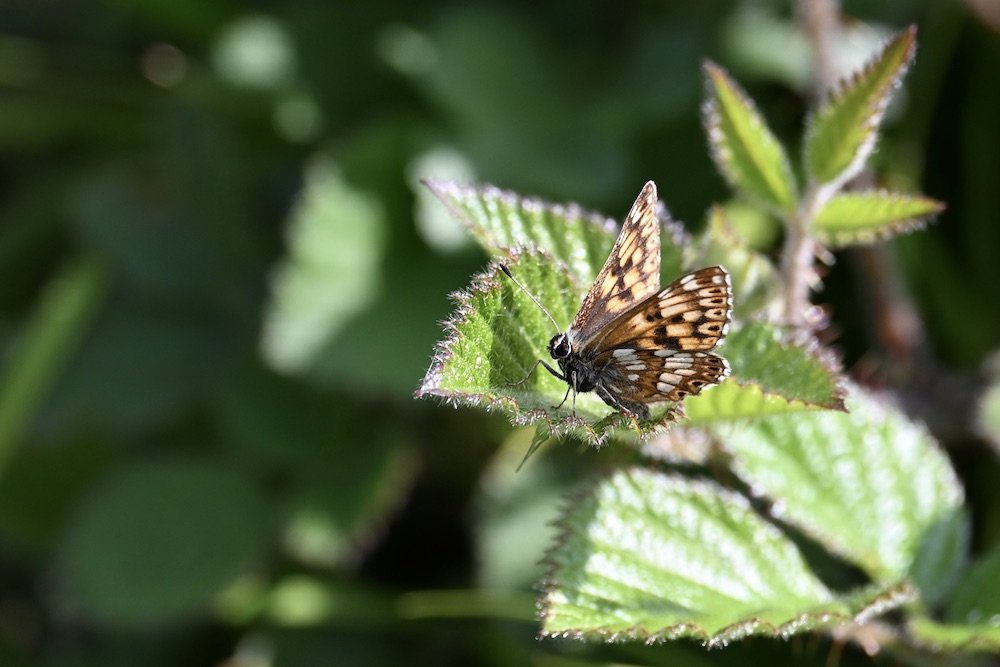 Through the woods and out into a clearing, planted with dogwood. I pause and receive a delightful surprise. The Duke of Burgundy pays me a visit. This is a rare butterfly - I know of nowhere else around here where you’ll find one - and we’re close to the end of their short annual season, so I stop a while to spend time in this exquisite company. As we sit together, Common Blues flutter around choosing not to disturb us.
