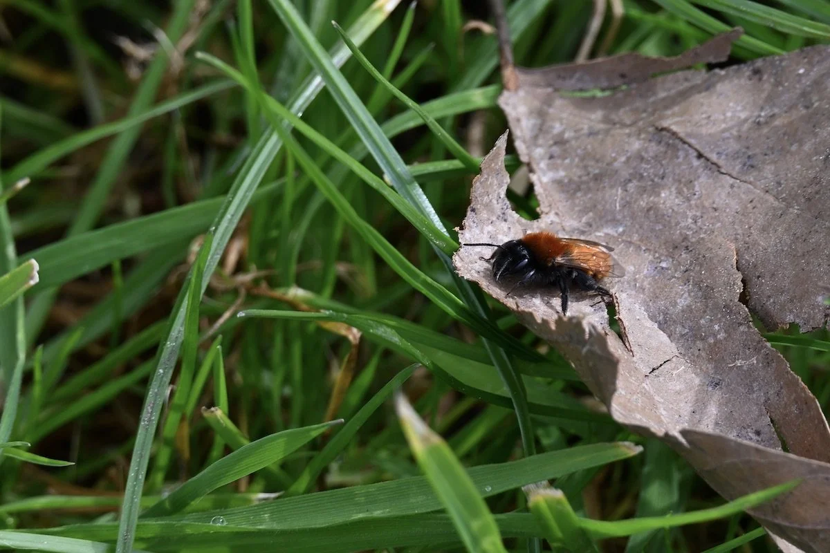 I wandered on - and then I heard the buzzing of a bee, and spotted this Tawny Mining Bee near my feet.